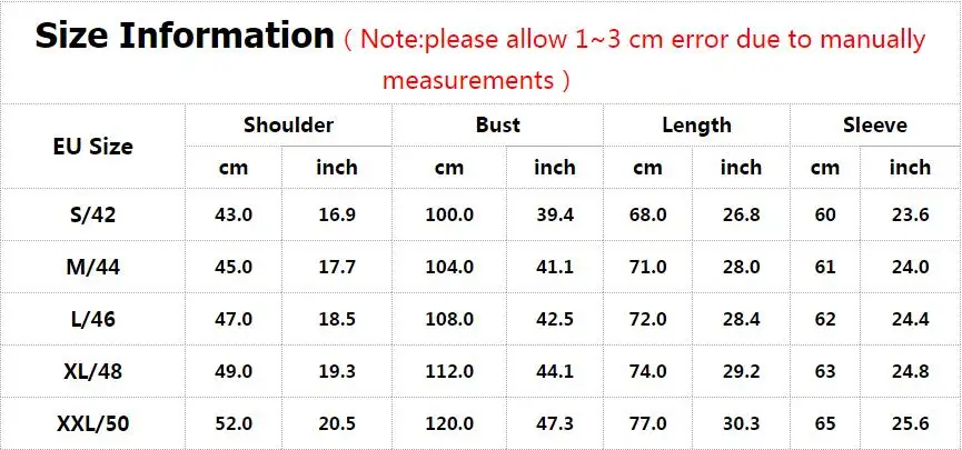 Size Information(Note:please allow 1~3 cm error due to manually measurements) |